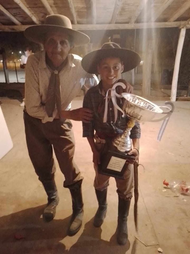 Los dos, abuelo y niño, tradición y futuro, volvieron a Tunuyán con la copa de campeones en destrezas criollas provinciales. Sí, papá: ¡la trajeron para casa!